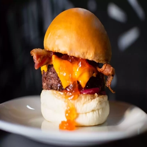 Burger de 150g, pão de brioche, queijo cheddar, cebola picles, bacon crocante e geleia de pimenta