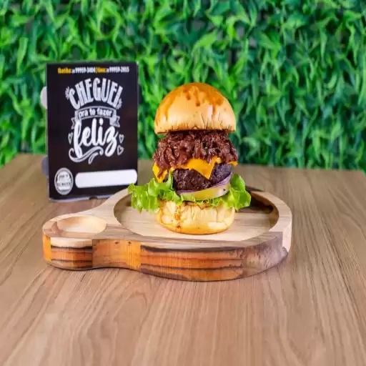 Pão de brioche, Burger 150g, Catupiry Empanado, Queijo Cheddar, Geleia de Pimenta e Molho Especial