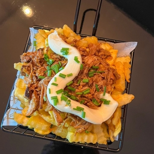 Batata Frita com Pulled Pork (Pernil Suíno desfiado) e Catupiry Original.